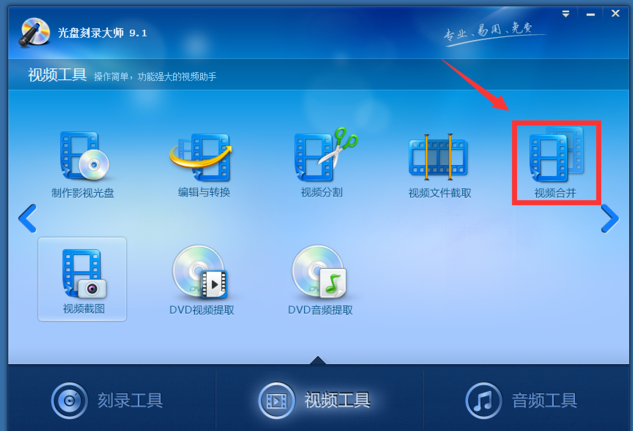 打开光盘刻录大师,点击选择视频工具,