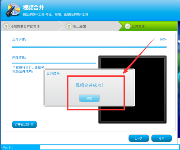 视频合并成功后,点击确定。