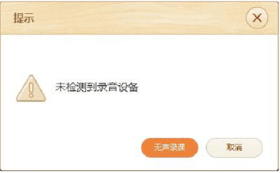 若没有接入录音设备,点击“开始录课”,则弹出未检测到录音设备提示,可选择无声录课