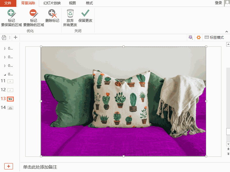 要删除渐变色背景的图片,则是多了一步:添加标记。