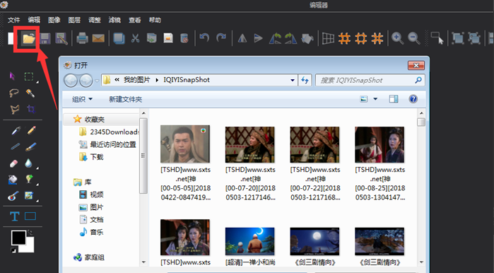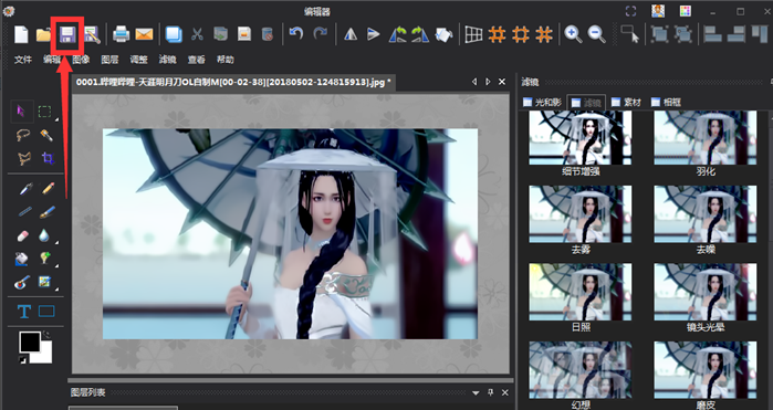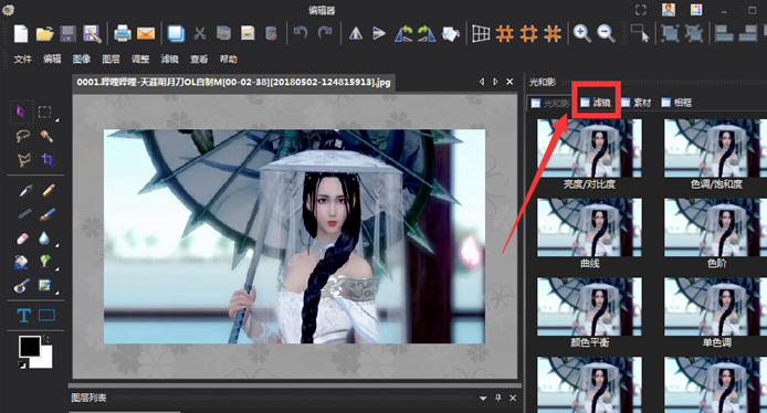 点击编辑器左上角的文件夹图标,点击选中要加滤镜的图片;