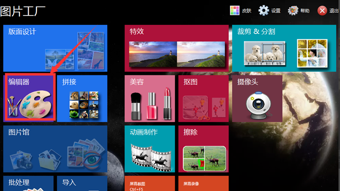 打开图片工厂,在页面找到并点击“编辑器”,如图;