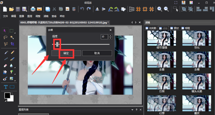 拉动“强度”滑杆来调节滤镜效果,然后点击确定;