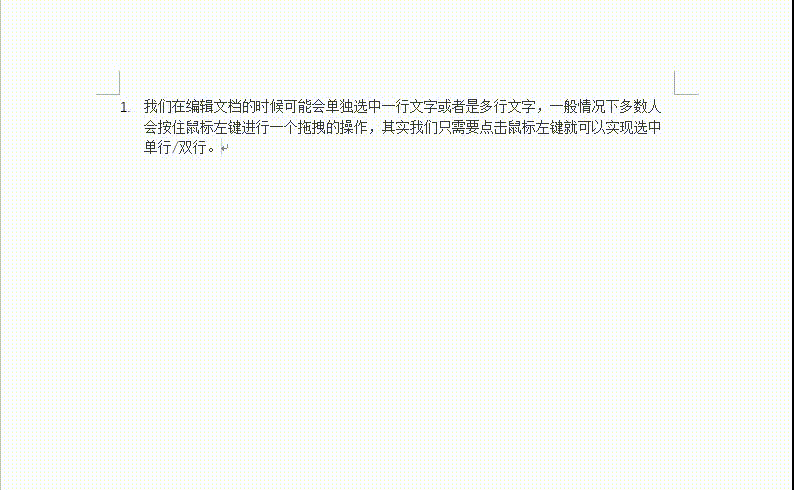 我们在编辑文档时可能会单独选中一行文字,一般情况下,多数人会按住鼠标左键进行拖拽,其实我们只需要点击鼠标左键就可以选中单行/双行。