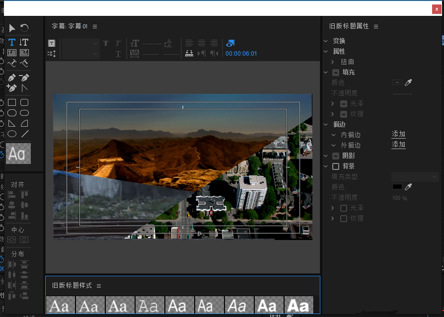 然后选择文件菜单,点击新建——旧版标题,弹出字幕创建窗口,点击确定进入字幕编辑窗口。