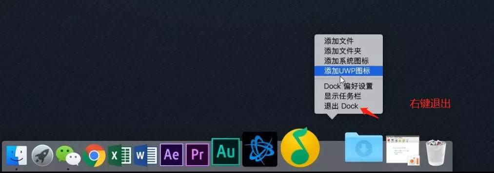 如果不想用这个软件的话,右键空白处点击推出 Dock 即可。