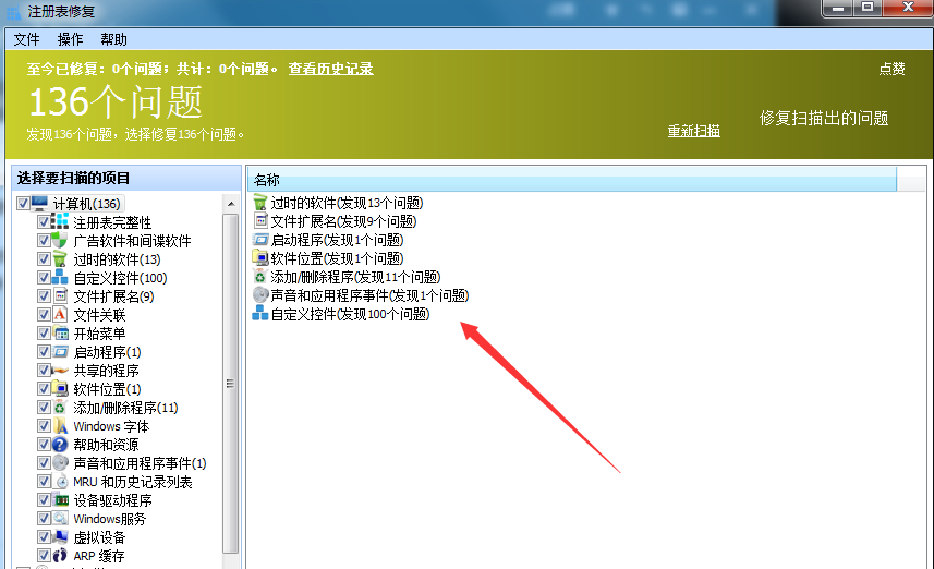我们点击Glary Utilities右上角,修复扫描出的问题。
