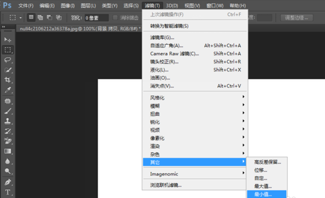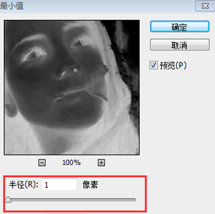 点击PS菜单栏的【滤镜】-【其他】-【最小值】,在最小值的窗口中调整半径到适当效果,我这里调整的是3像素,然后点击【确定】,素描轮廓就出来了,得到下图效果;