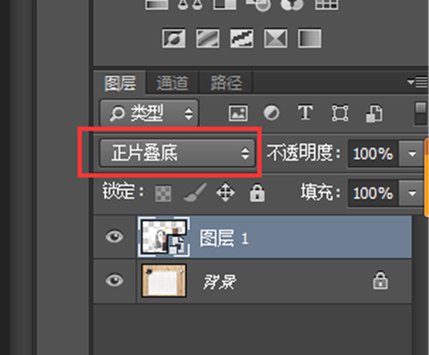 点击图层1的图层混合模式的下拉菜单,把【正常】模式改为【正片叠底】模式得到下图3效果。