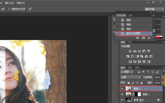 同时按Ctrl+J复制一层背景图层,得到背景拷贝图层;