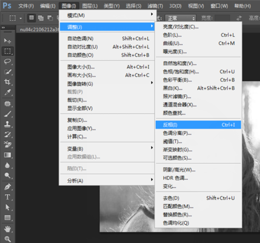 点击菜单栏的【图像】-【调整】-【反相】,得到下图效果;