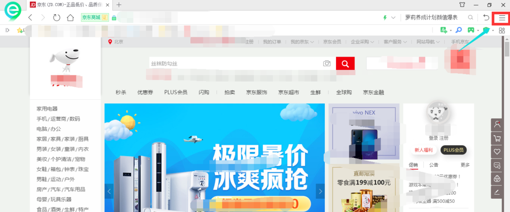 在360浏览器右侧有个菜单选项,点击打开,如图,
