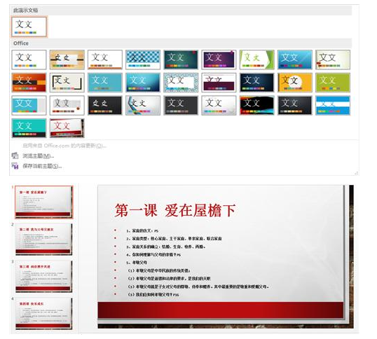 导入PPT后,就要给PPT穿衣服啦,点击【设计】工具栏,可以看到很多主题,选择你喜欢的、就会发现PPT穿上统一的制服了!
