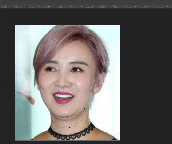 在工具栏中找到钢笔工具,勾出人物的双下巴,注意弧度,Ctrl加回车,把钢笔锚点变为选区。
