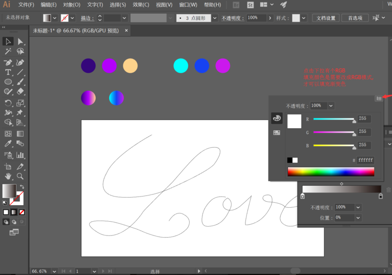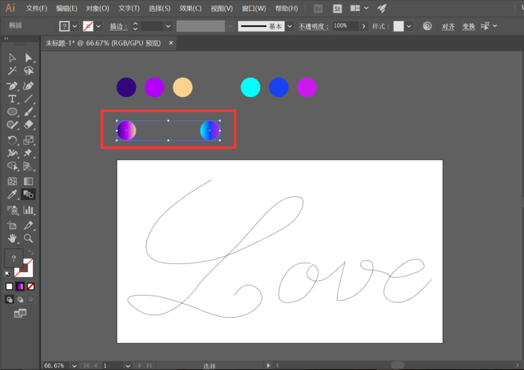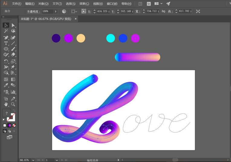 现在选中前面做好的渐变条和Love中的L,点击对象-混合-替换混合轴,效果如图,