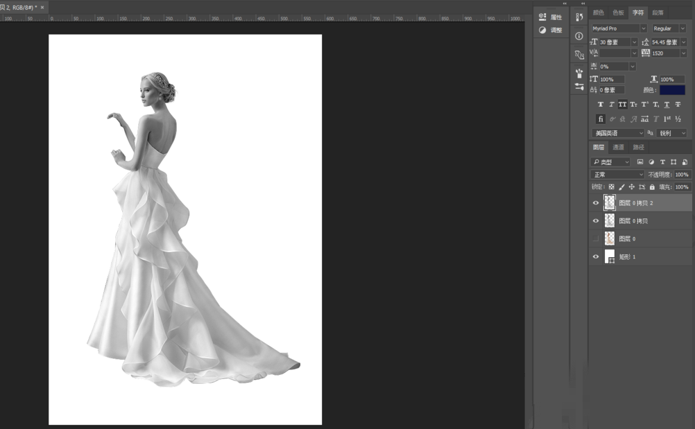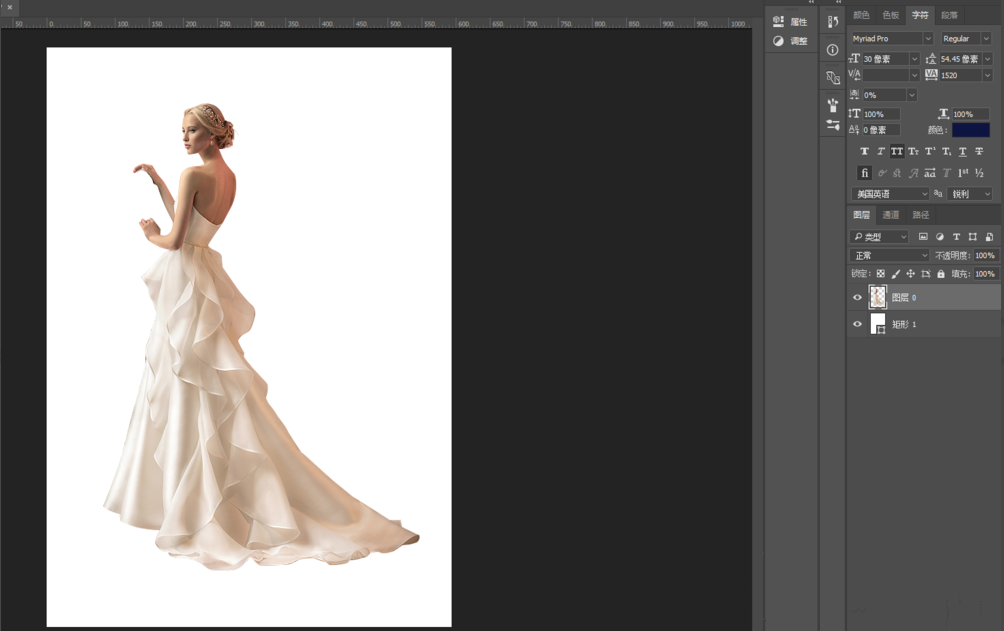 打开Photoshop,把需要提取线稿的图片拖入软件,我这里选择用婚纱作为案例。