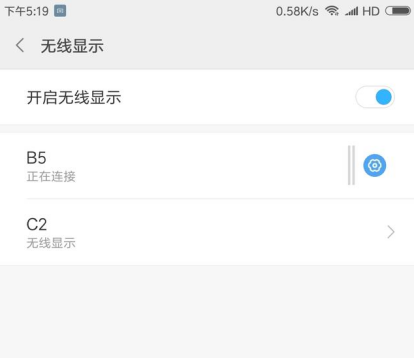 然后打开手机设置,开启无线显示按钮,看到电脑信息后,点击连接,手机就成功投屏到电脑了。