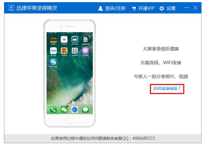 1、手机和电脑接入同一WiFi,电脑上下载一个【迅捷苹果录屏精灵】软件,查看连接教程。