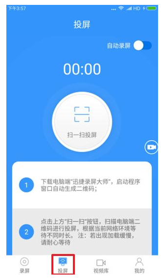 打开手机迅捷录屏大师,进入【投屏】。