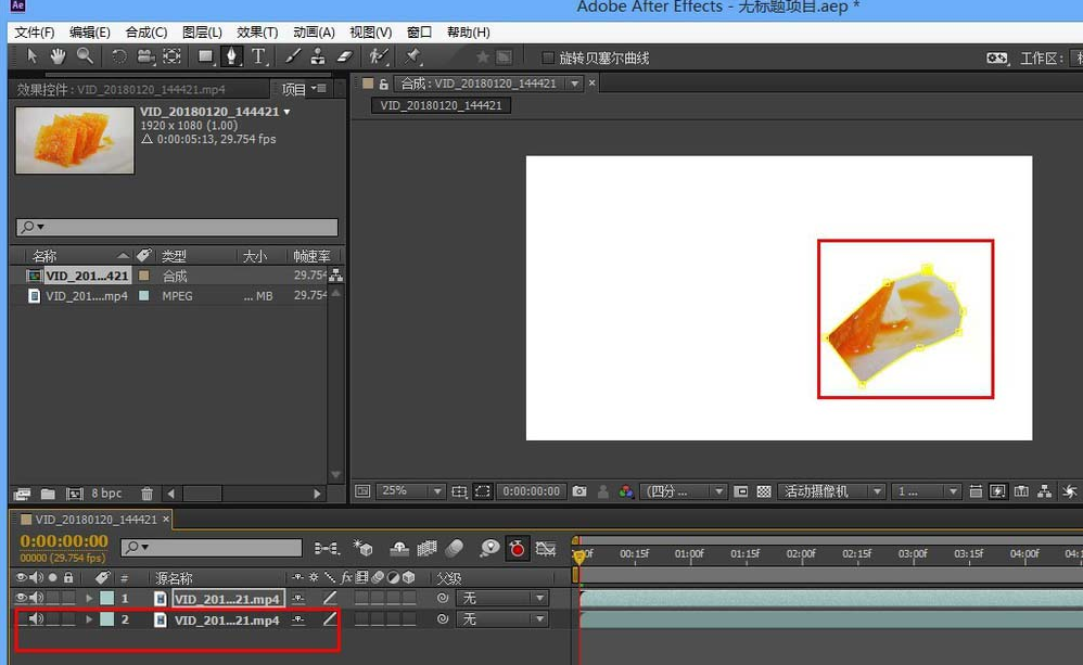 1、打开Adobe After Effects软件,导入需要编辑的视频,
