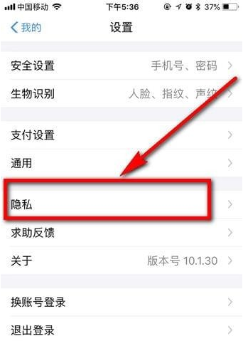 3.设置界面选择隐私选项卡进入