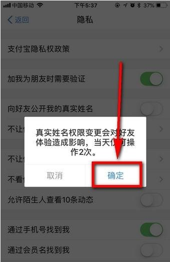 5.系统提示这个操作影响体验,点击确定,关闭后就不会显示你的真实名字了