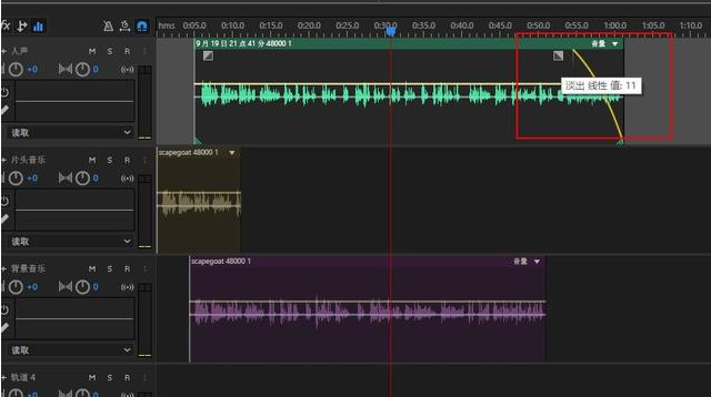 拖动即可调节淡出曲线,这样,音频的音量就可以缓缓结束,不会突然结束