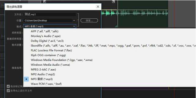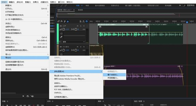 这时候我们可以输出音频文件,步骤为:右上角点击:文件 - 导出 - 多轨混音 - 整个会话