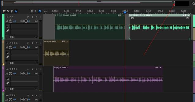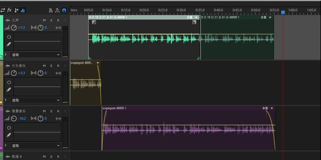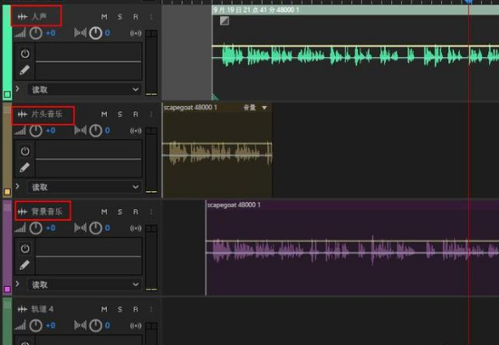 比如我命名的轨道分别为,【人声】【片头音乐】【背景音乐】