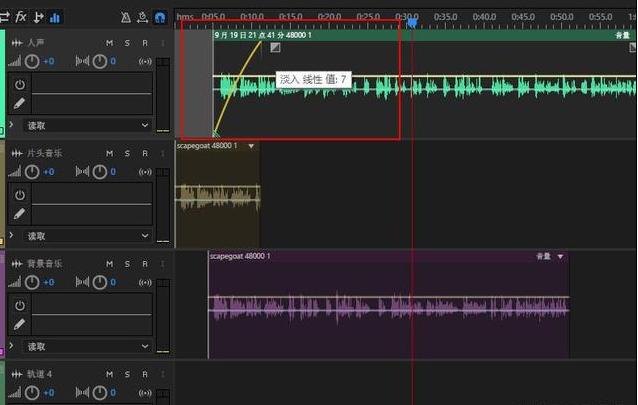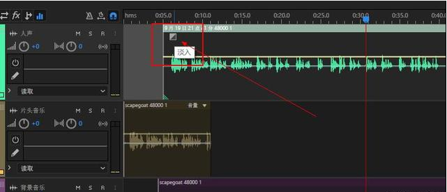 拖动即可调节淡入曲线,这样,音频的音量就可以缓缓进入,不会在音频开始播放时,没有节奏感或者突然发出很大的声音。