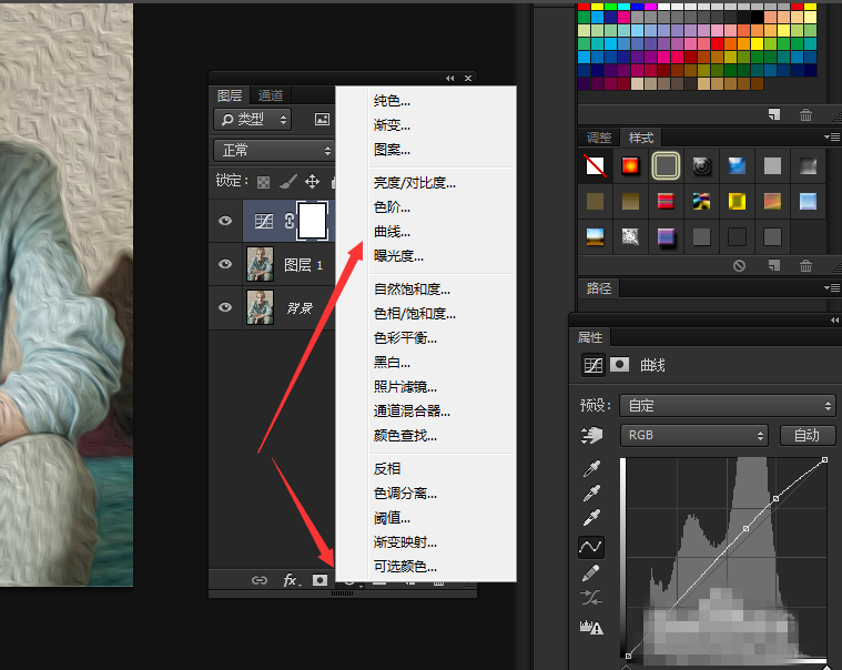 在图层下方太极图标,点击展开找到曲线(这一步可有可无),根据素材来调,只要是为了提亮素材,
