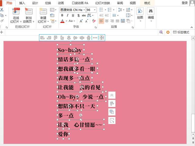 首先,我们把文字输入其中,注意要把这些文字分文本框一个个的输入。