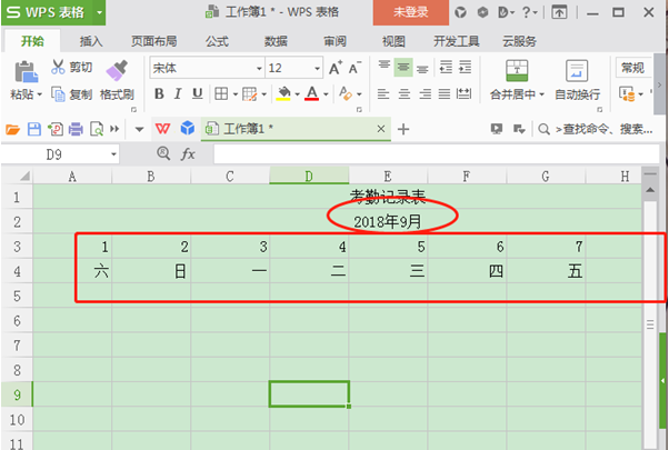 9、接着更改表头的时间,下面的星期也会跟着变化(如图)。