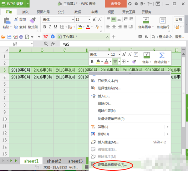 5、选中第一行,右击鼠标,点击‘设置单元格格式’(如图);