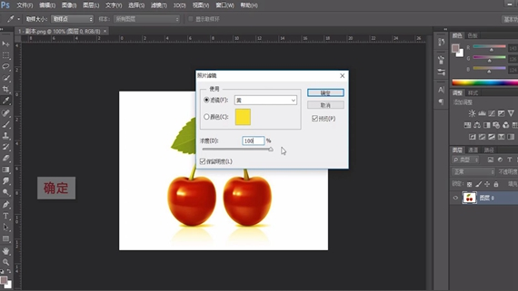 这时候我们发现红色的樱桃蒙上了一层黄色光晕,这就是滤镜。