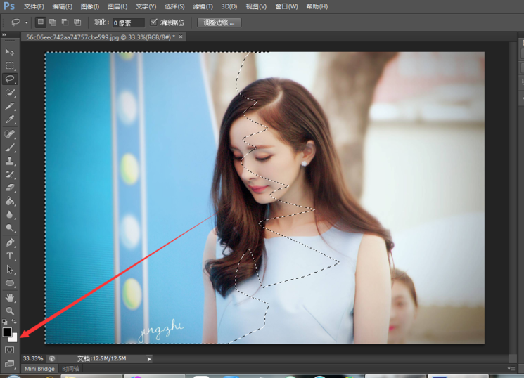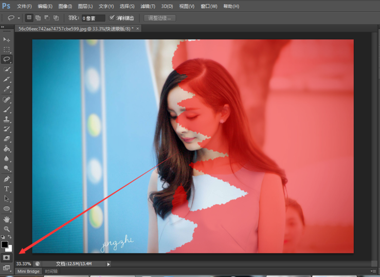 点击下面的快速蒙版工具,