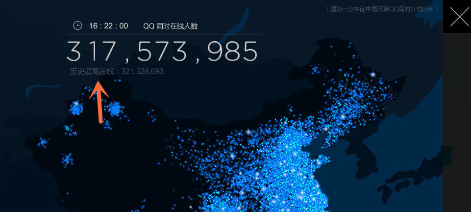 小编教你解决点击一下。 cwhello 2021年4月10日 其他教程 浏览:5008 0 登录QQ账号之后,我们可以查看全国范围内和你同时在线的QQ人数,想知道方法吗?不废话,直接看说明。 如何查看全国同时在线的QQ人数? 先在百度上搜索QQ官网,点击进入, 进入官网,在右上角可以看到当前在线人数, 点开之后,我们可以看见历史最高在线人数。 上一篇: 图文详解实现图片逐渐放大。 下一篇: 今天分享教你用可牛影像制作闪图。