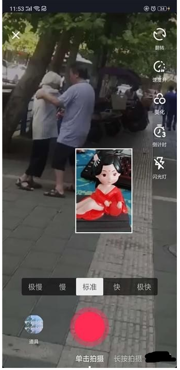 开始拍摄视频,中间那个小框框的就是自己的视频,后面是原来的视频,想要抢哪一个人的视频就可以用这个方法。