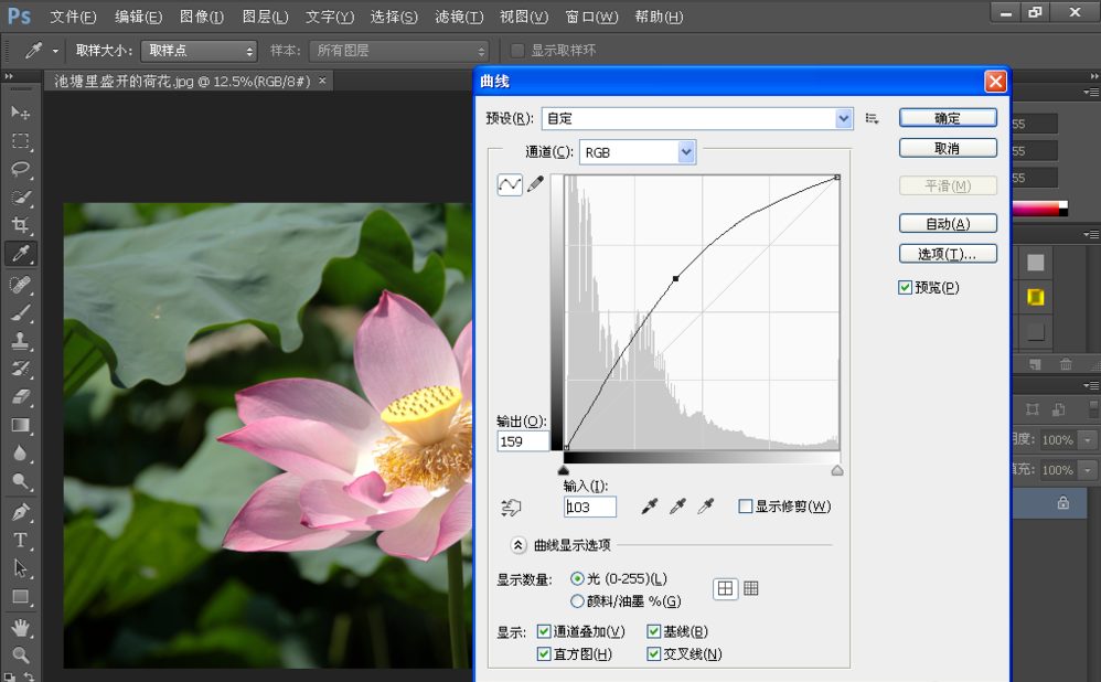 点击菜单栏上的图像——调整——曲线;