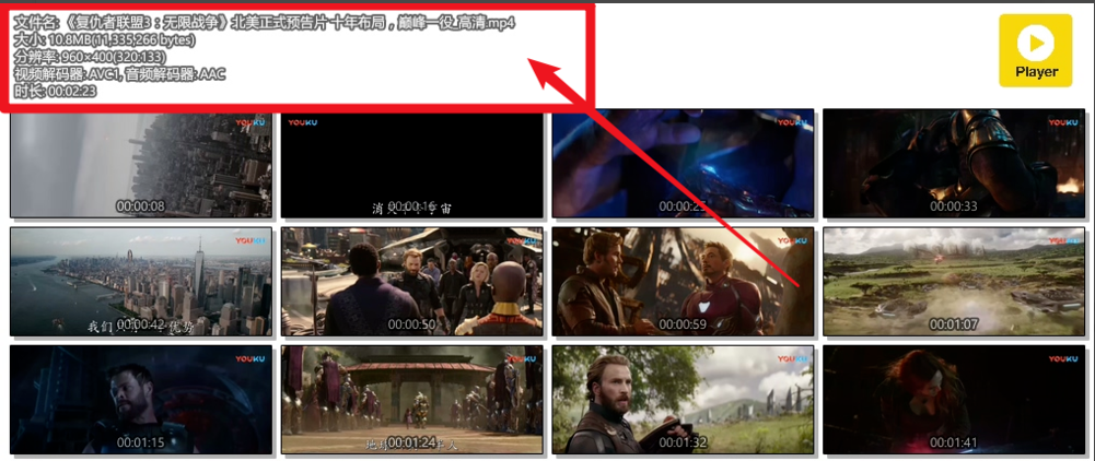 等待一会儿,下面就是缩略图效果,我们可以看到视频的参数信息。