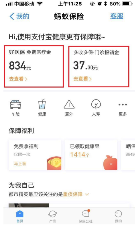 可以看到“好医保免费医疗金”、“多收多保门诊报销金”,