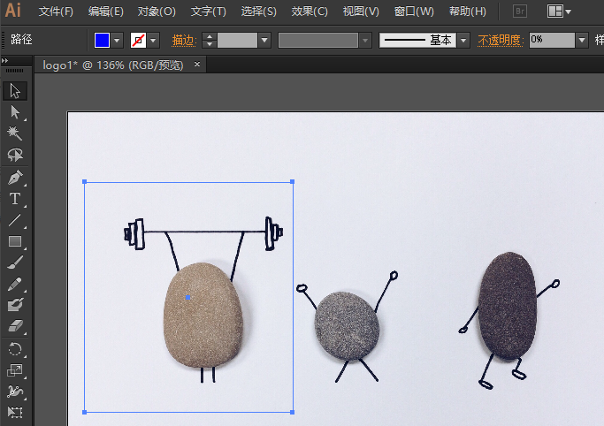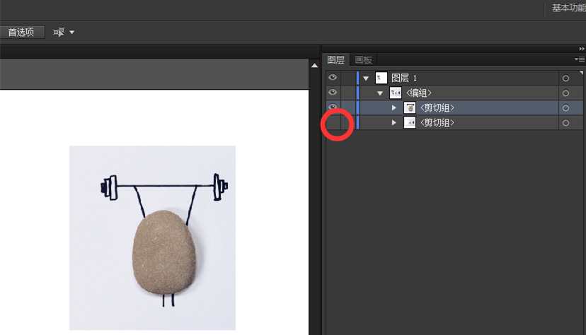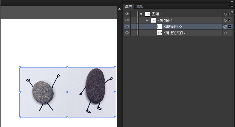 同时选中图片和矩形,右键或按快捷键ctrl+7创建剪切蒙版,就得到了中间的石头人儿,