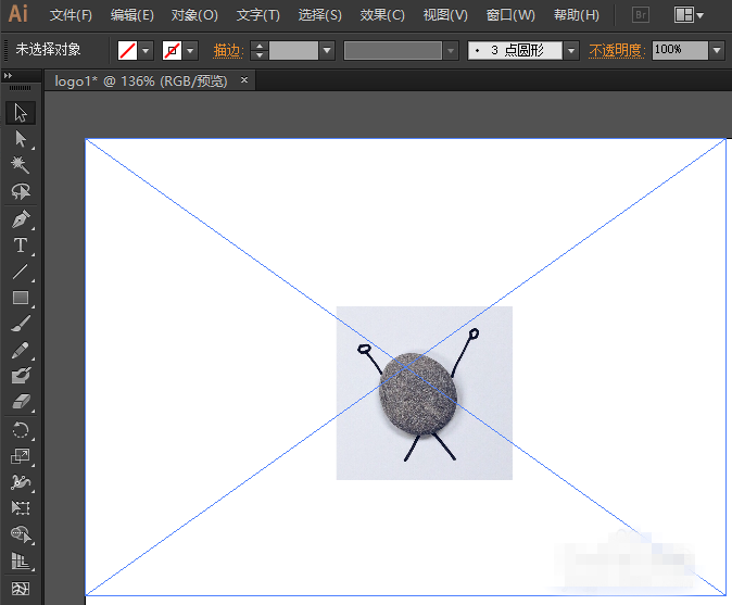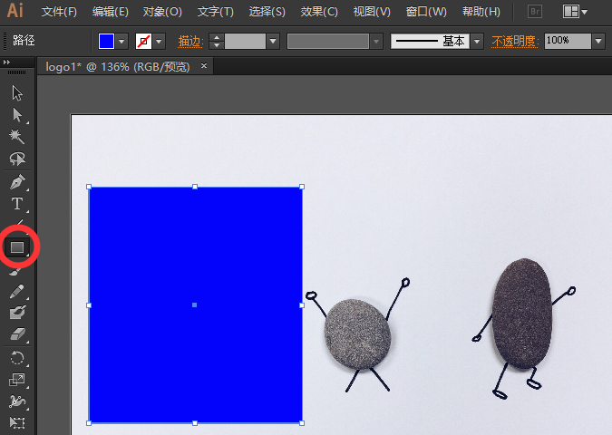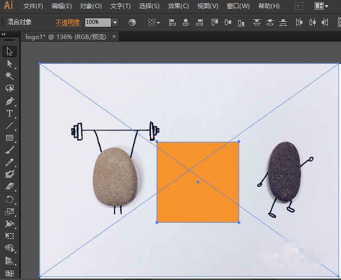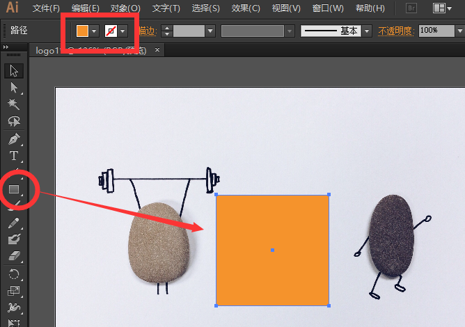 打开Adobe Illustrator软件,导入需要剪裁的图片,用形状工具绘制出需要的部分,现在我想剪裁中间的石头人儿,所以绘制了一个橘黄色的矩形。PS:填色与描边不用管,无影响。