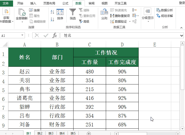 如果表头单元格大小不一致,想要实现数据排序就得费点周折了。