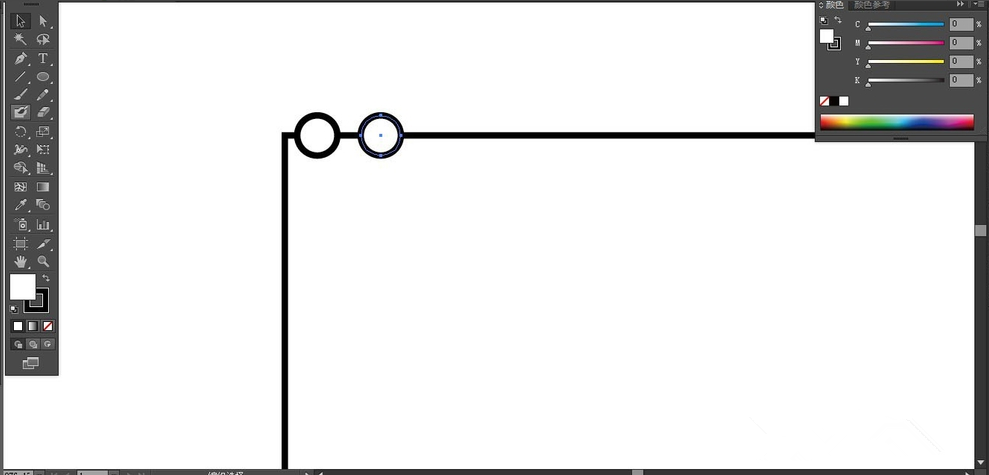 选择工具栏中的椭圆工具,绘制小正圆形,将其中心与矩形的边对齐,按住Alt键复制一个小正圆形。