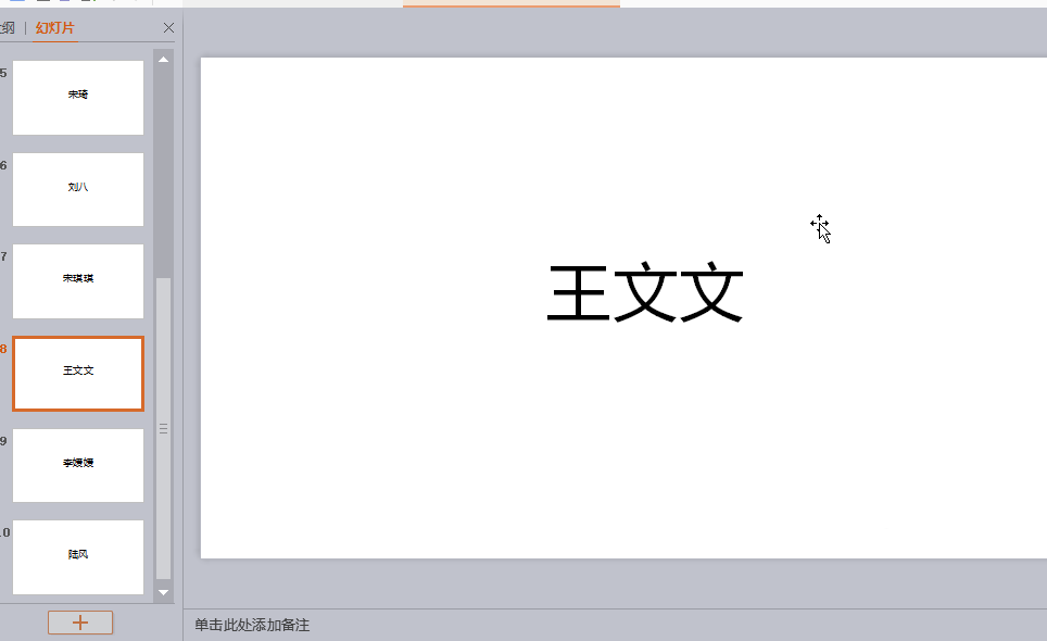 1、在每一张ppt上输入每个人的姓名