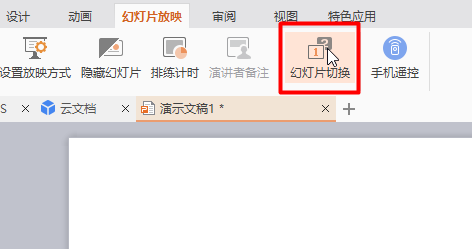 3、点击“幻灯片放映”→“幻灯片切换”
