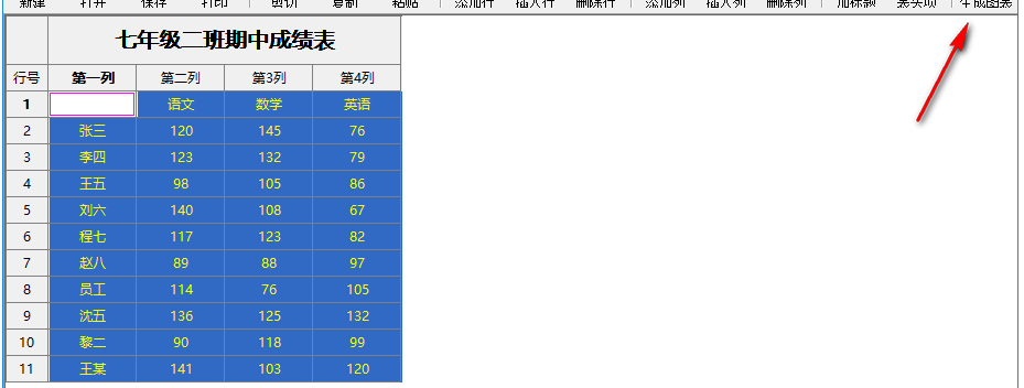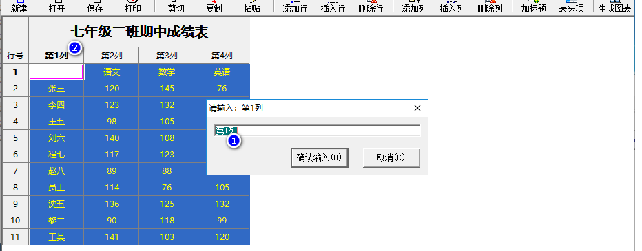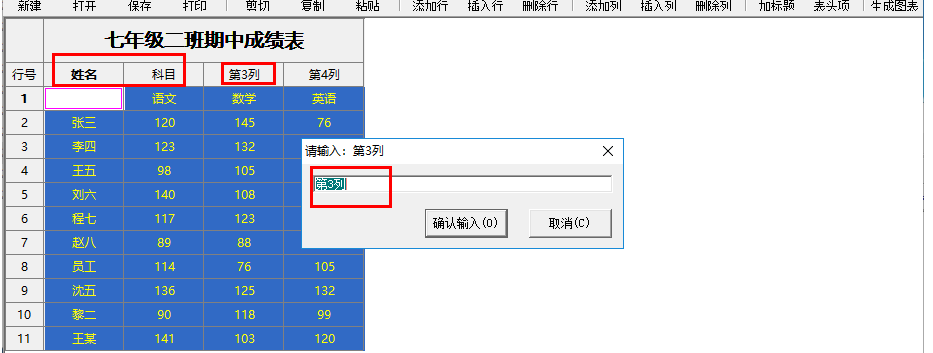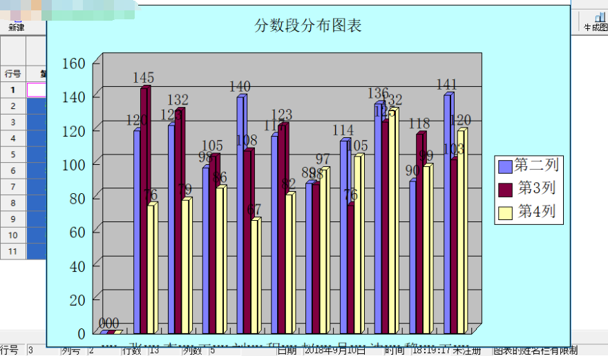 10、也能对第一列的名字修改,设置为名字,设置为分数,自己安装数据输入吧