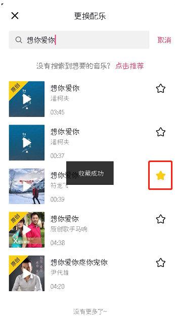 4、找到音乐,点击右边的五角星即可收藏。
