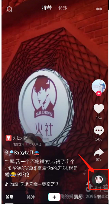 1、打开抖音APP,进入页面,点击视频右下角的歌曲头像,